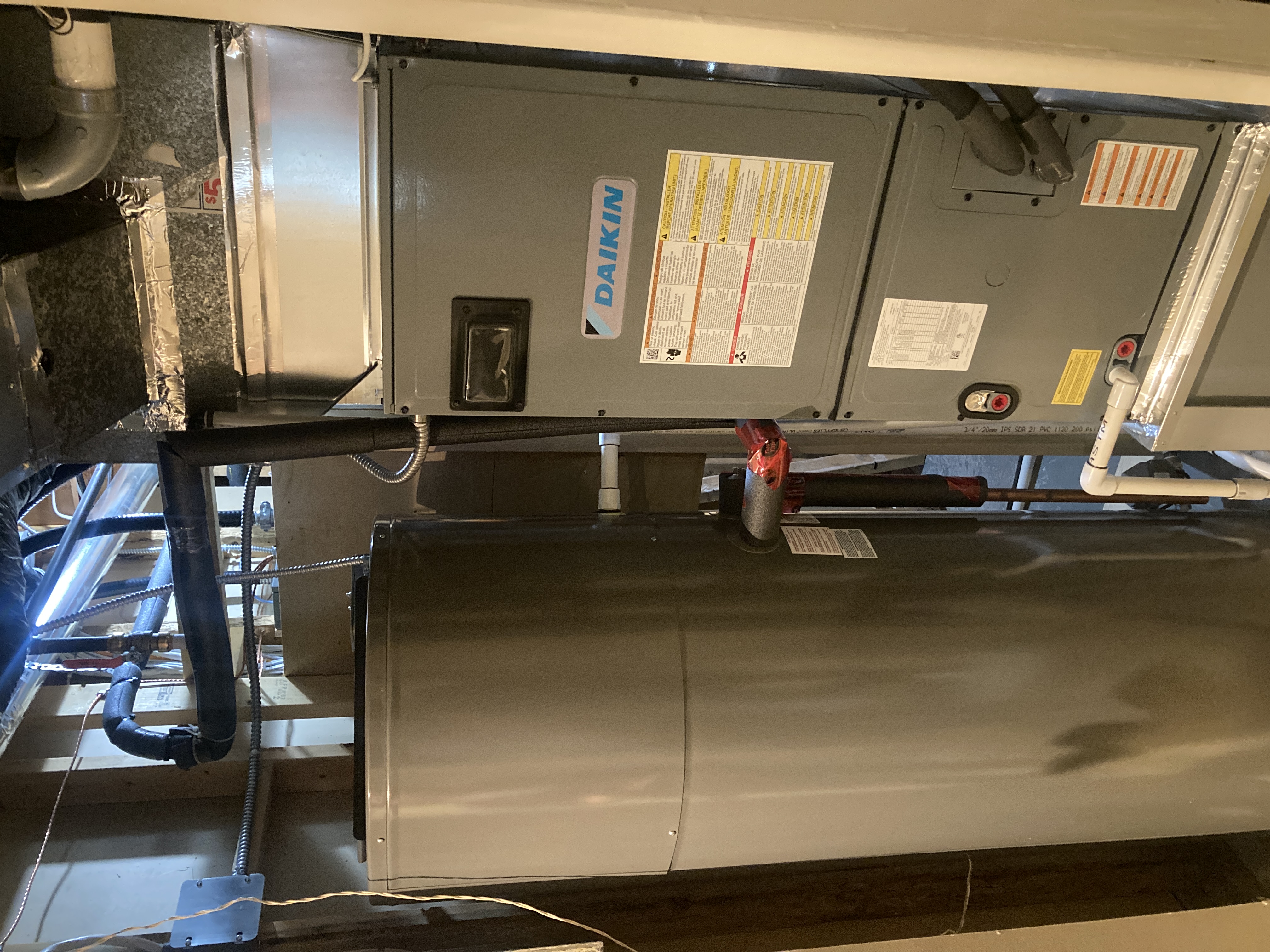 2-ton Daikin heat pump (9.1 HSPF), backup resistive electric coil. |