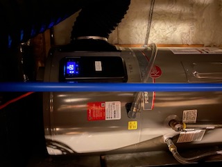 - This project used the old natural gas chimney path as the route for the hybrid hot water tank ducting, but the family is finding that the vertical chimney is acting as a cold sink, and allowing cold air to enter their basement. The family is considering capping that chimney and finding another solution that does not give cold air a direct path into their home.