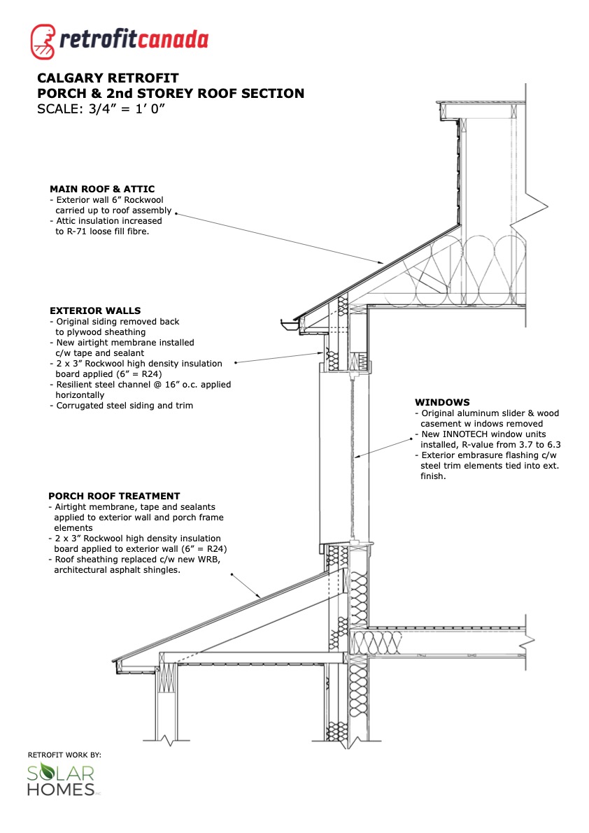 In 2023, Solar Homes Inc. retrofitted this 1984 Calgary home, getting it to net-zero ready. By increasing the home’s airtightness, adding more insulation to the exterior walls and attic, and upgrading windows and mechanical system, the home’s estimated energy use dropped almost 50 per cent. The project even added an extension to the rear master bedroom.